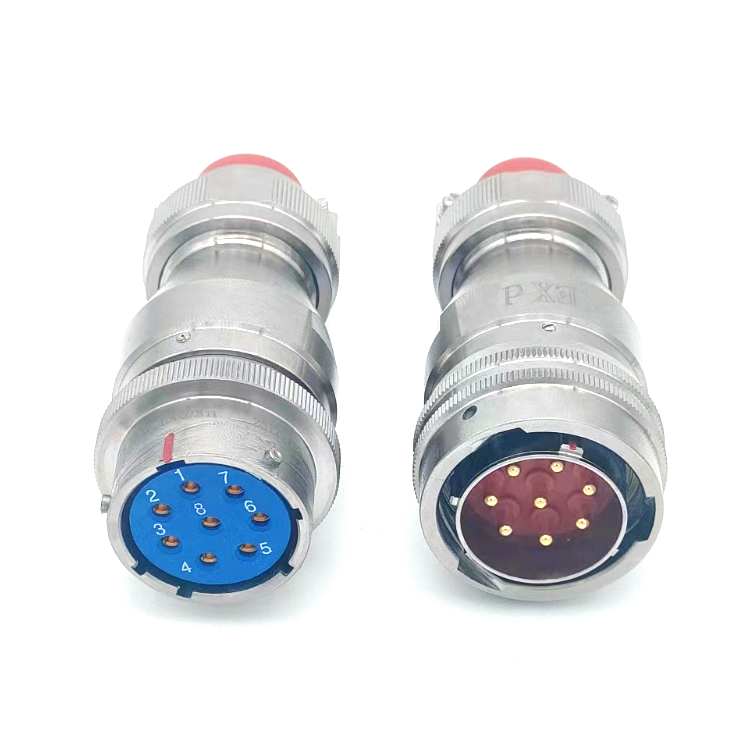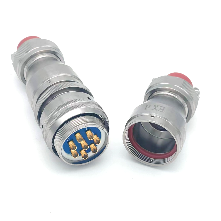 FB.EXd-1808ZJ11圓形對(duì)接式防爆電連接器,體積小,不銹鋼材料,質(zhì)地堅(jiān)硬,耐高溫,防碰抗摔。接觸件8p,2.5mm直徑,額定電流25A,額定電壓1500V.插座有三種形式:方法蘭固定式,方法蘭移動(dòng)式,圓形法蘭對(duì)接式。用處不同:方法蘭式固定在面板上,基本不改變位置。移動(dòng)式與其相反,插座固定在移動(dòng)支架上,哪里需要哪里使用。對(duì)接式連接電纜,兩頭連接在移動(dòng)設(shè)備,隨時(shí)隨地連接使用。防爆電連接器每個(gè)鏈接處有密封設(shè)計(jì),防水防爆。插頭與插座有卡扣連接,螺紋連接,客戶(hù)根據(jù)喜好選用。端接形式有焊接式和壓接式。